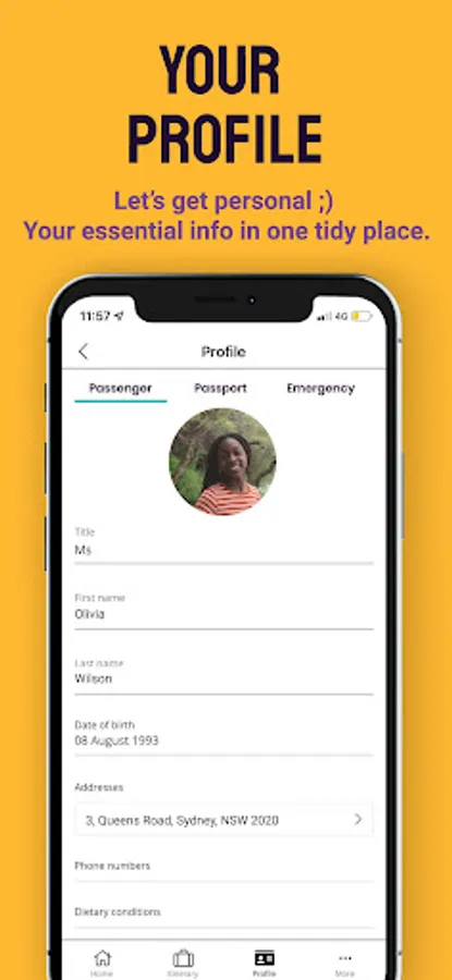 • PERSONAL INFO. Dietary needs? Contact deets? Ensure your personal info is correct before you travel.