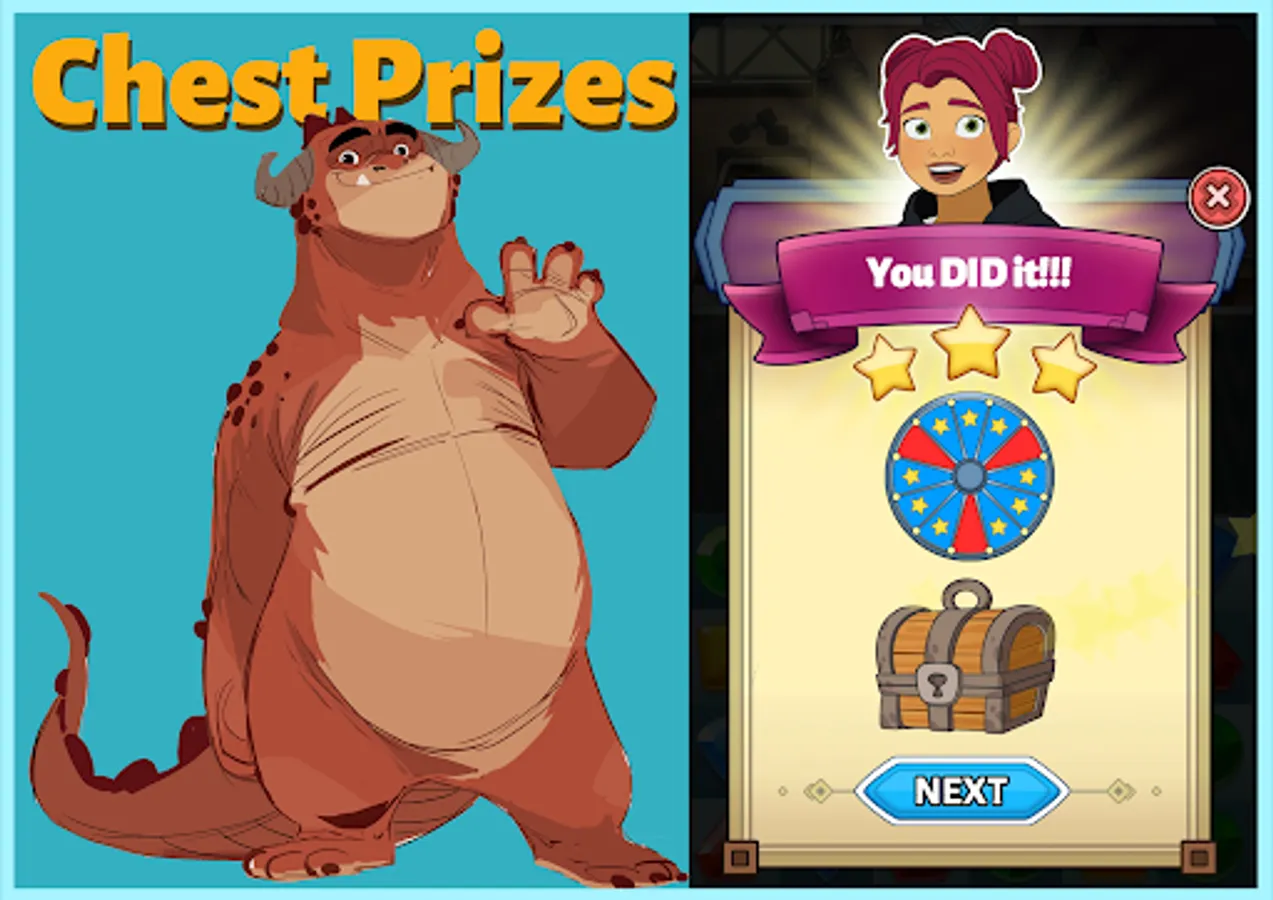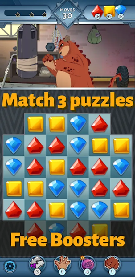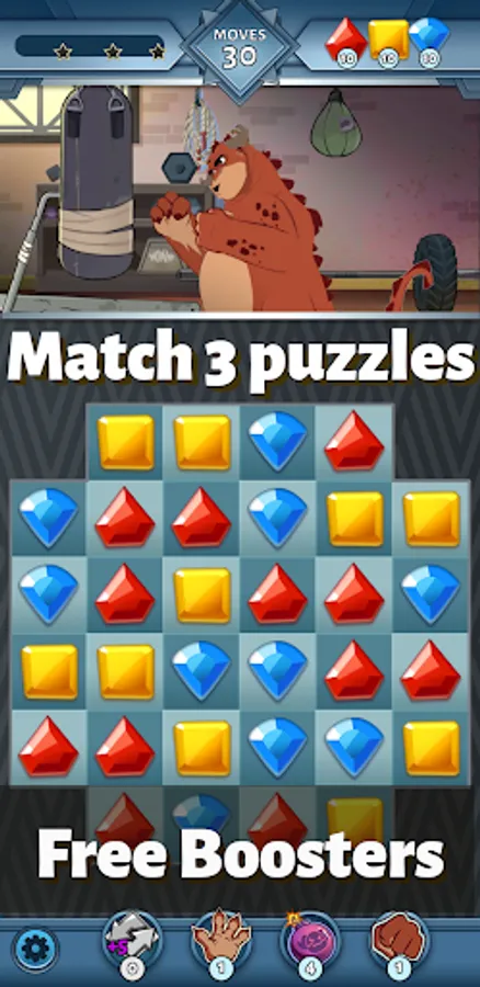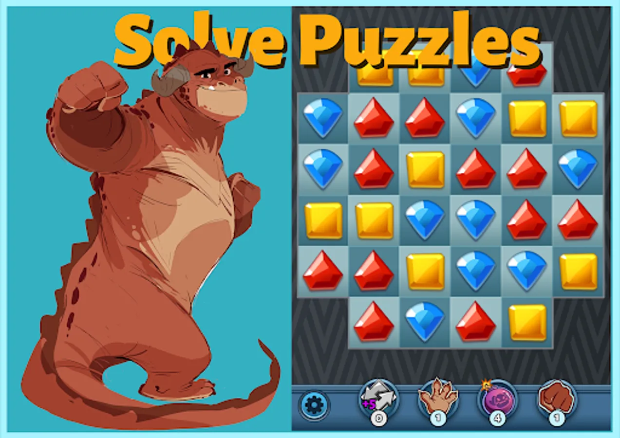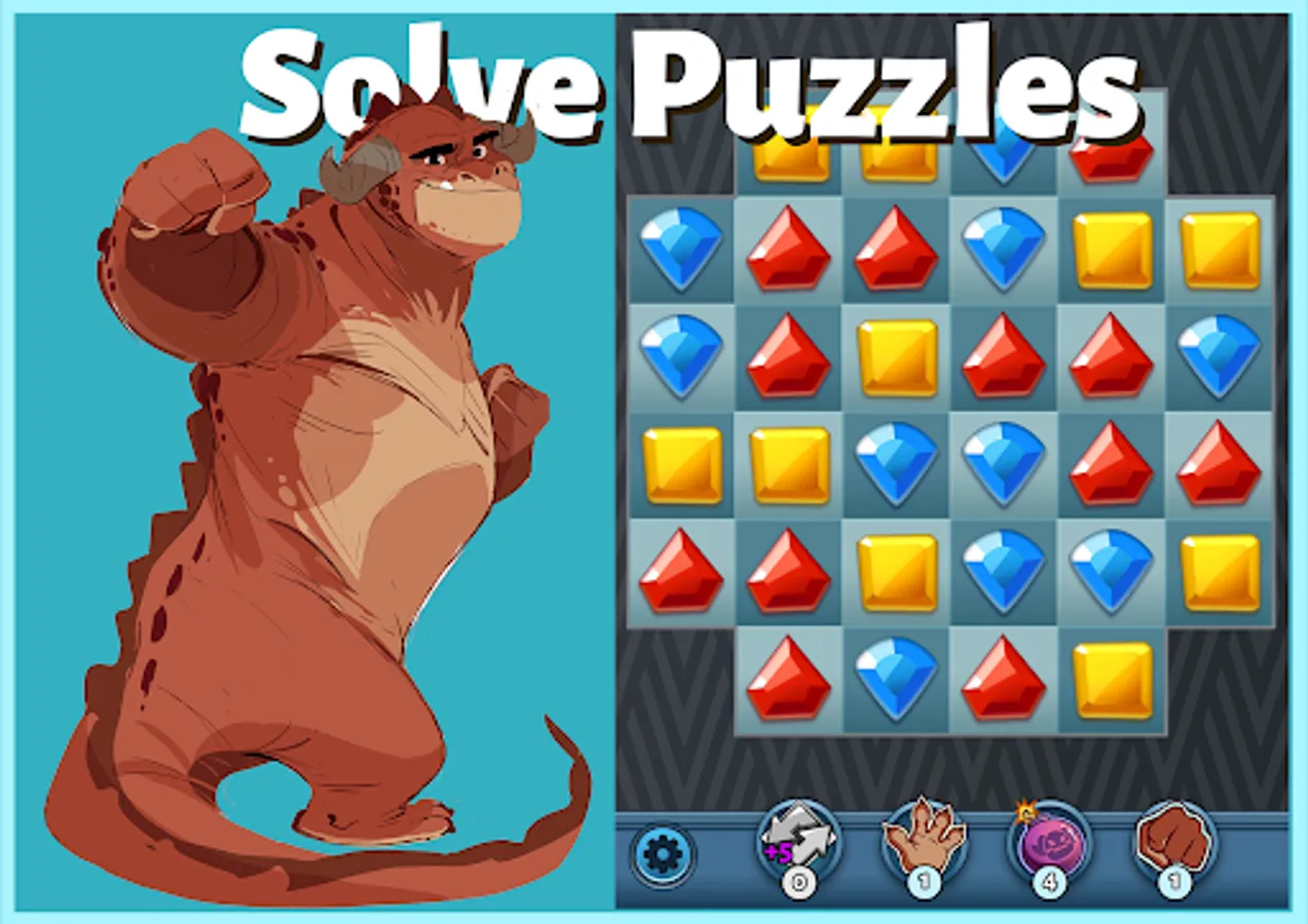 Earn coins, boosters, and power ups at each level, while Rayburn, main character in RUMBLE, trains and faces other monsters on his quest to become a champion.