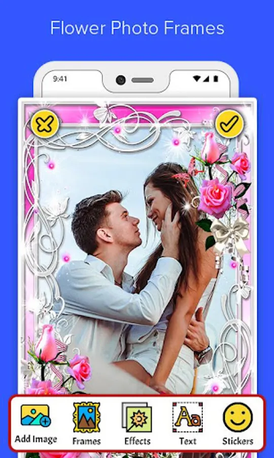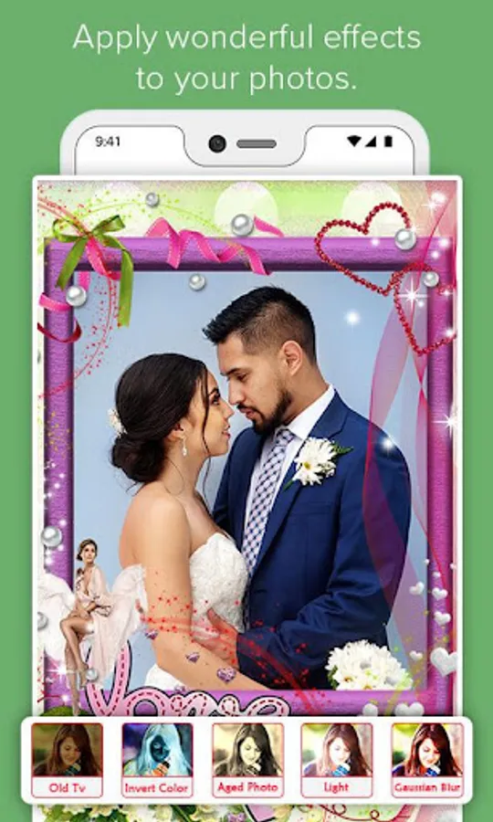 Add color magic to the photos of your loved ones by adding them with fantastic Love flower frames and Effects.