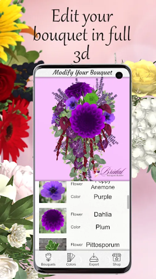 Whether you’re a bride-to-be, a florist, or anyone that is helping with wedding flowers, this app is for you. Bridal Bouquet Builder helps you design virtual 3D wedding bouquets, without any artistic skill or computer knowledge.