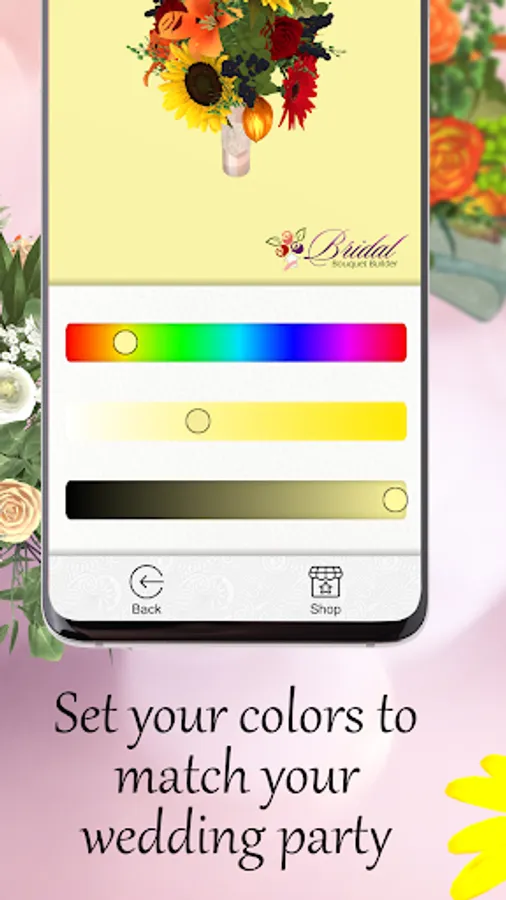 Start by choosing a style of bouquet you would like to arrange. Change the backdrop color to match the bridal gown or bridesmaid's dresses. Click on the flower or foliage you would like to change, then, change the color of that flower. You will be able to rotate your bouquet, so you can see if from every angle.