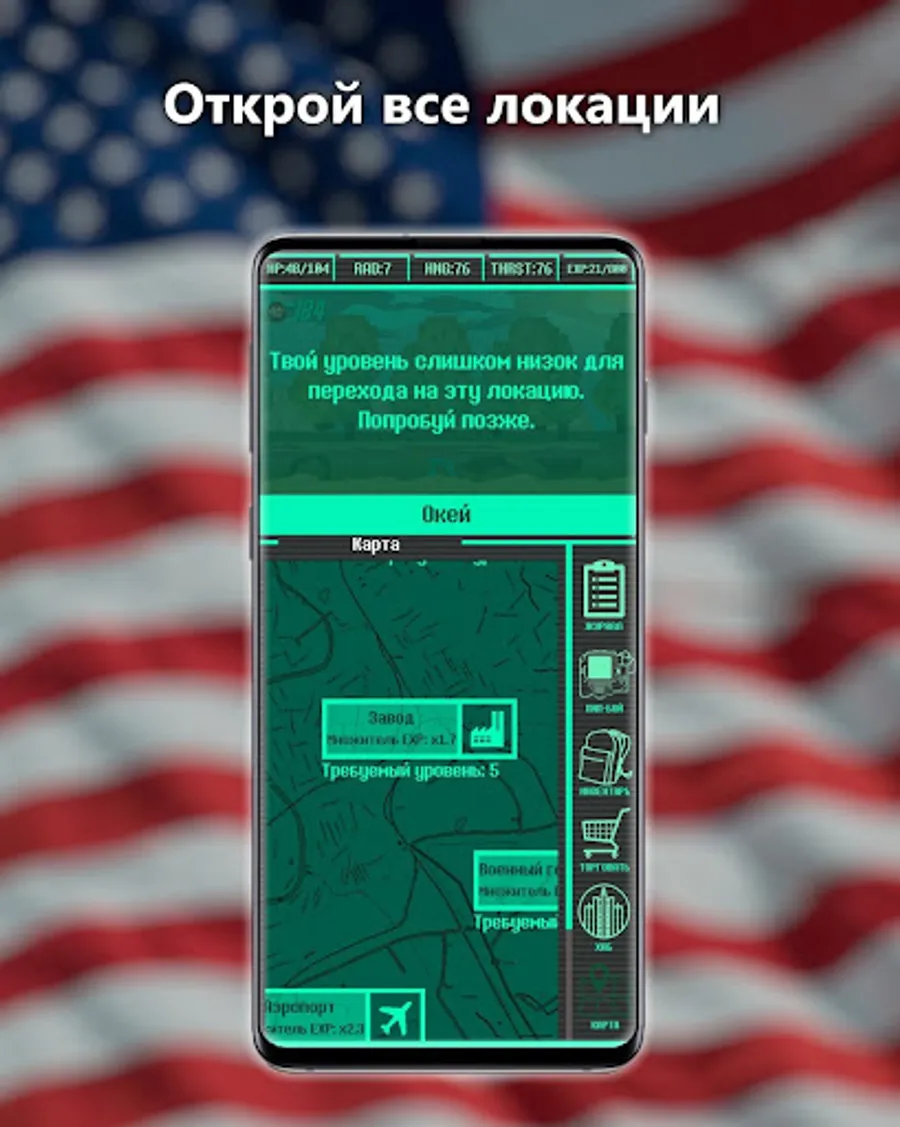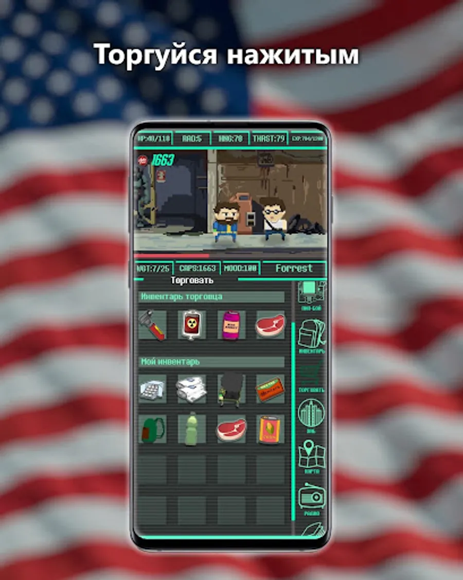 Pocket Survivor - an exciting android game where you will survive in a terrible destroyed world. In this game, your hero will move and explore the world around you, and you will follow everything that happens on the pages of the “event log”. Suck your hero during the game and give him a powerful weapon to fight enemies. Develop your tactics of the game and achieve excellent results. Buy and collect consumables and sell them much more expensive and more profitable for you. Listen to the radio and hold on as long as possible in this game.