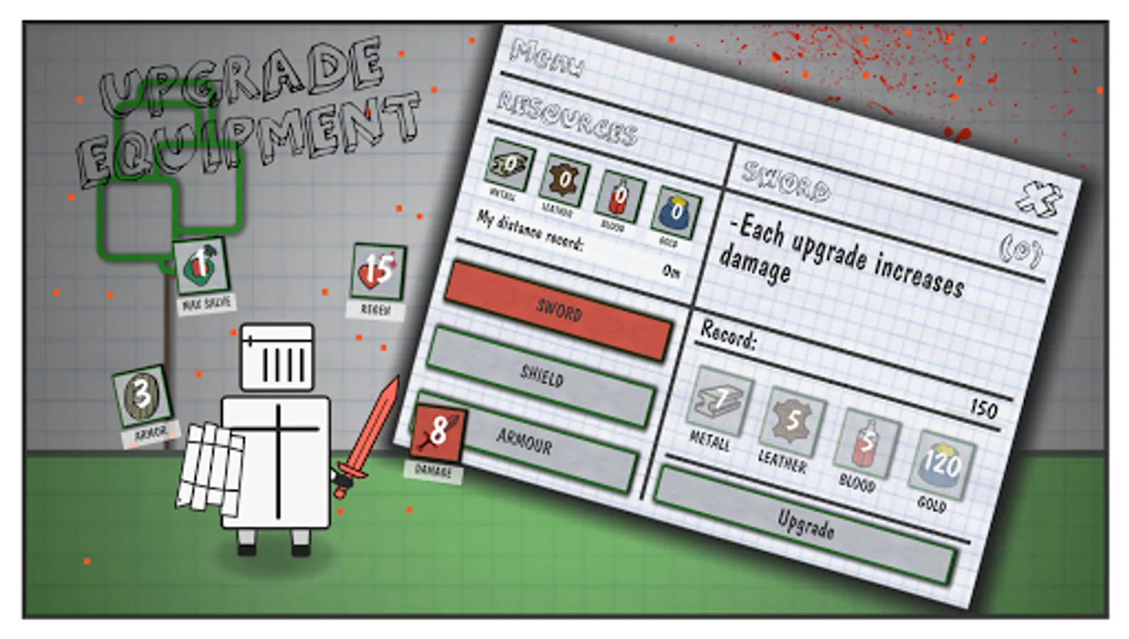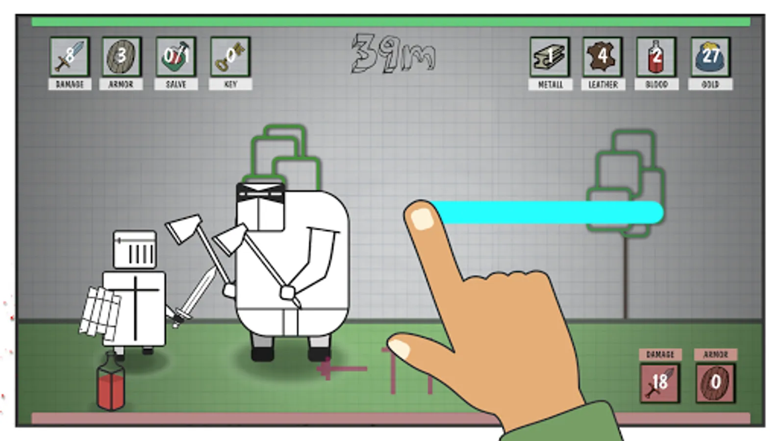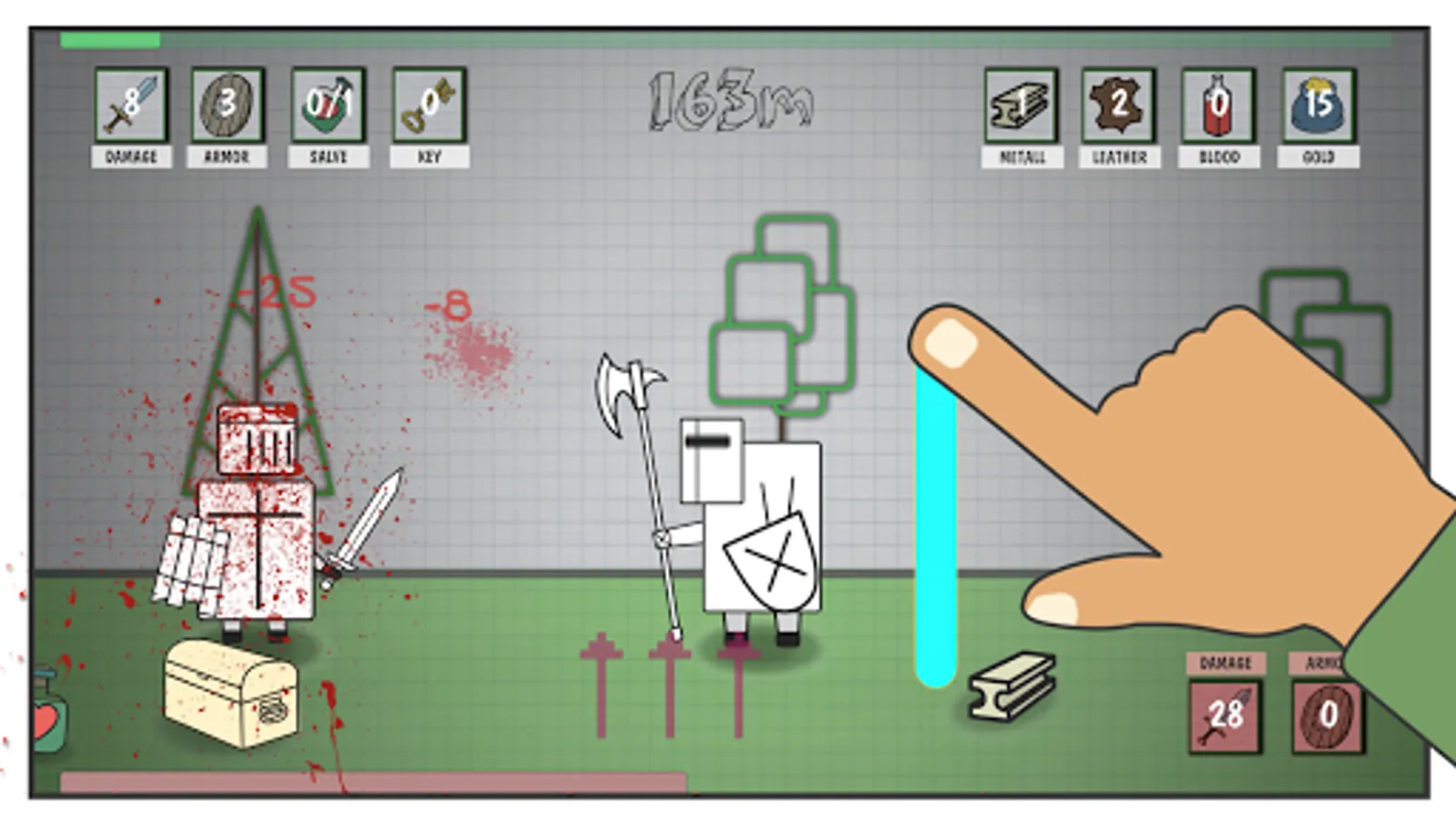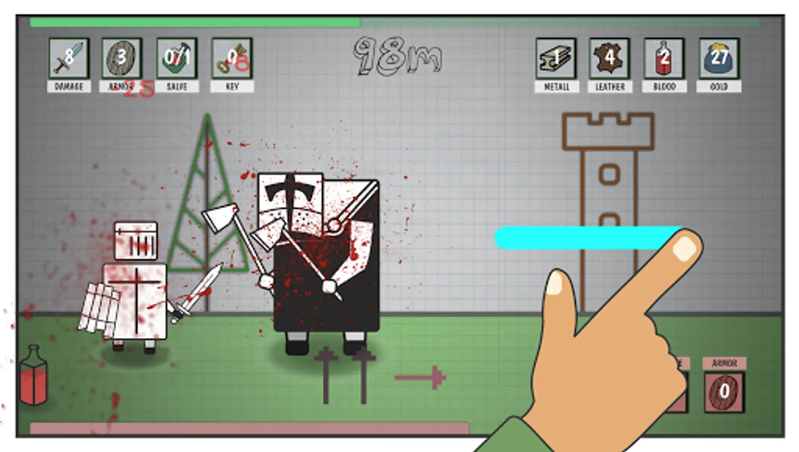 You are a glorious knight running to nowhere. Use all your SWIPing violence to kill enemies, collect resources, upgrade equipment and enjoy cut off limbs of fools you will meet on the way!
