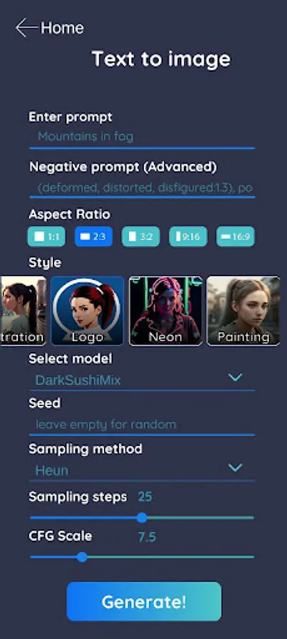 The AI Art Generator is an advanced tool that utilizes text-to-image generation technology to create a broad range of unique and personalized art pieces based on your text prompts. With this innovative system, you can showcase your creativity and bring your visions to life, whether you're looking to produce a stunning abstract painting or a set of custom emojis that are truly one-of-a-kind. By leveraging the power of cutting-edge artificial intelligence, the AI Art Generator provides a wealth of opportunities for artists, designers, and anyone who wants to explore the frontiers of digital art. With its intuitive interface and versatile capabilities, this tool is the perfect choice for anyone looking to unleash their artistic potential and create something truly extraordinary. So why wait? Try the AI Art Generator today and discover a whole new world of creative possibilities!