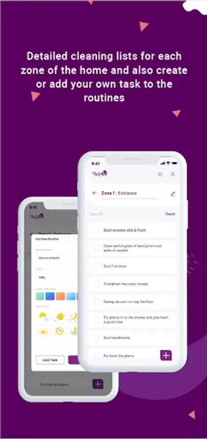 - Pre-loaded routine lists that you can customize and check off as you declutter and clean a little each day, including: