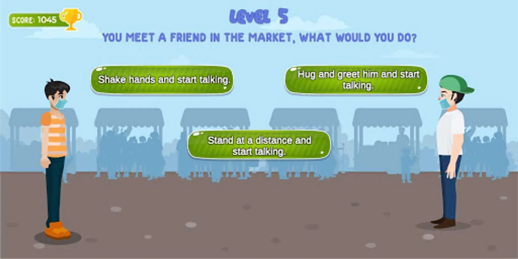 You are presented with various situations and you make decisions to cross levels. Choose the correct options to progress. Pay attention to what "HudHud" says. He will help you win the game.