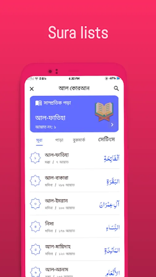 Al Quran Bangla you can learn and listen to sura, and read 1 - 30 para Quran Arabic, English, Bangla, and turkey.