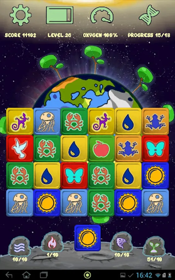 Are you master in "three in a row" puzzles? Try this one! Choose the evolutionary path and improve the planet. You can upgrade everything... ABSOLUTELY EVERYTHING!.