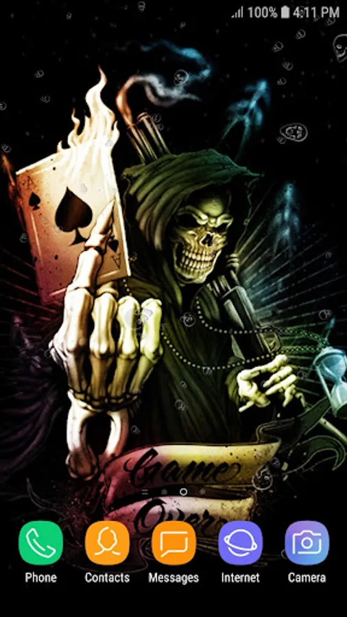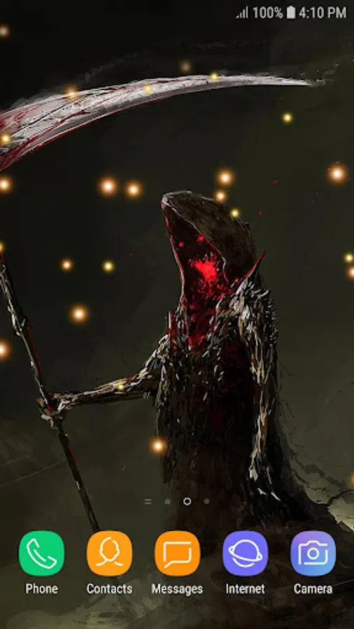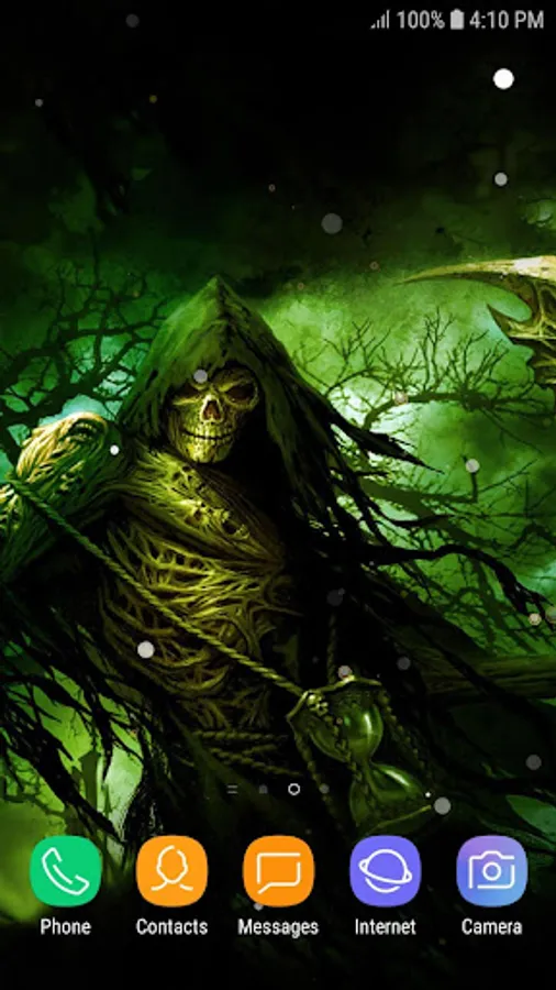 “Make your own wallpaper” - select your favorite Grim Reaper background or “Grim Reaper wallpapers”, choose the type of particles, their speed and density, or create your own live wallpapers free – use the custom photo option at the end of the wallpaper gallery!