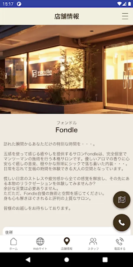 The map of the store is displayed and it is linked with the map app, so you can easily find it even when you visit the store for the first time.