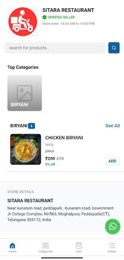 The customer side of the app