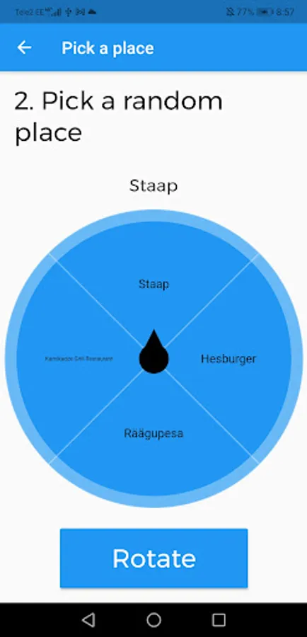 Application that selects a random restaurant nearby and in addition you can query directions to get there.