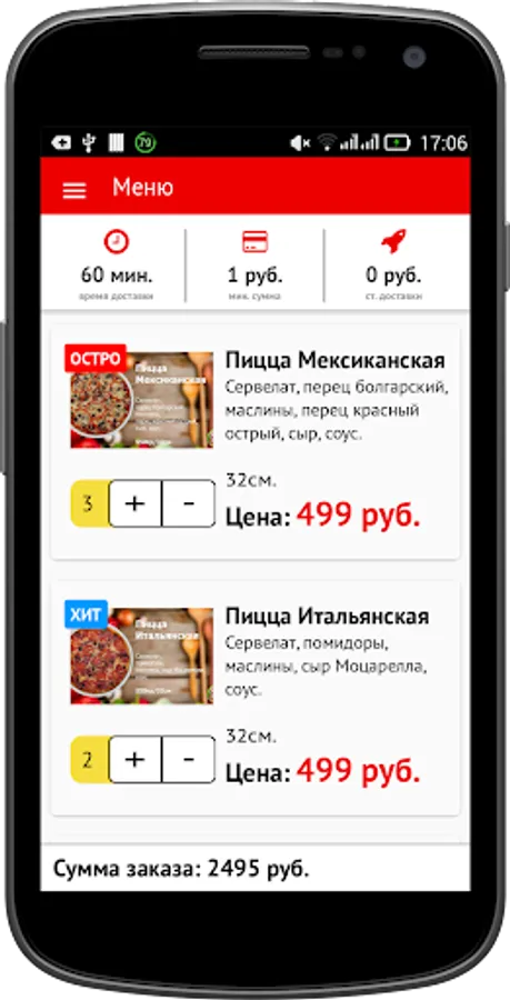 Welcome to the app for ordering food. We promise you will be satisfied with the quality of our products. We will promptly deliver your order anywhere in the city, and rest assured that your pizza will be the same fresh and tasty. Today, we work for you in the city of Kazan.