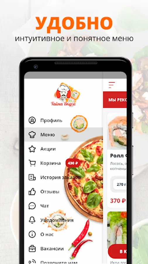 Food delivery food delivery app The Secret of Taste. Our assortment: pizza, rolls, barbecue, sushi, WOK, burgers, hot dogs and much more in the cities: Ryazan