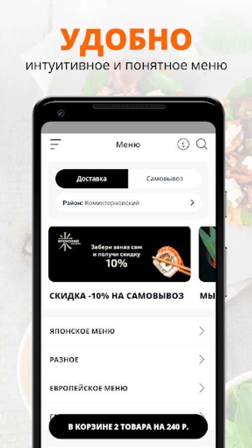 Our dishes are distinguished by their unique taste and exquisite decoration. In our restaurant they are always waiting for you, and the courier always hurries to your home with an order! The variety of Japanese and European dishes will certainly delight you and leave the most delicious and pleasant impressions.