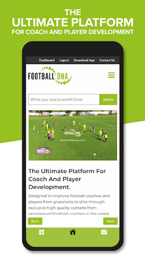 The Football DNA App is designed to improve football coaches and players from grassroots to elite through exclusive high quality content from experienced football coaches in the game. Easily search through and filter over 1000 videos on the platform to find coaching resources from U5’s all the way through to senior football. Content is produced by UEFA-licensed coaches appropriate to the age group and you will never be short of ideas. Including specialist One to One, Goalkeeping, SAQ & tutorial video coaching content.