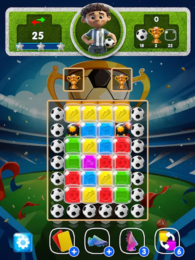 Step onto the pitch and immerse yourself in the most electrifying soccer puzzle game ever created! Join us on this thrilling journey into the world of soccer, where you'll meet our beloved character: Soccer Sam. Get ready to score goals, tackle challenging levels, and celebrate like a champion! It's time to lace up your virtual boots and play Football Blast!