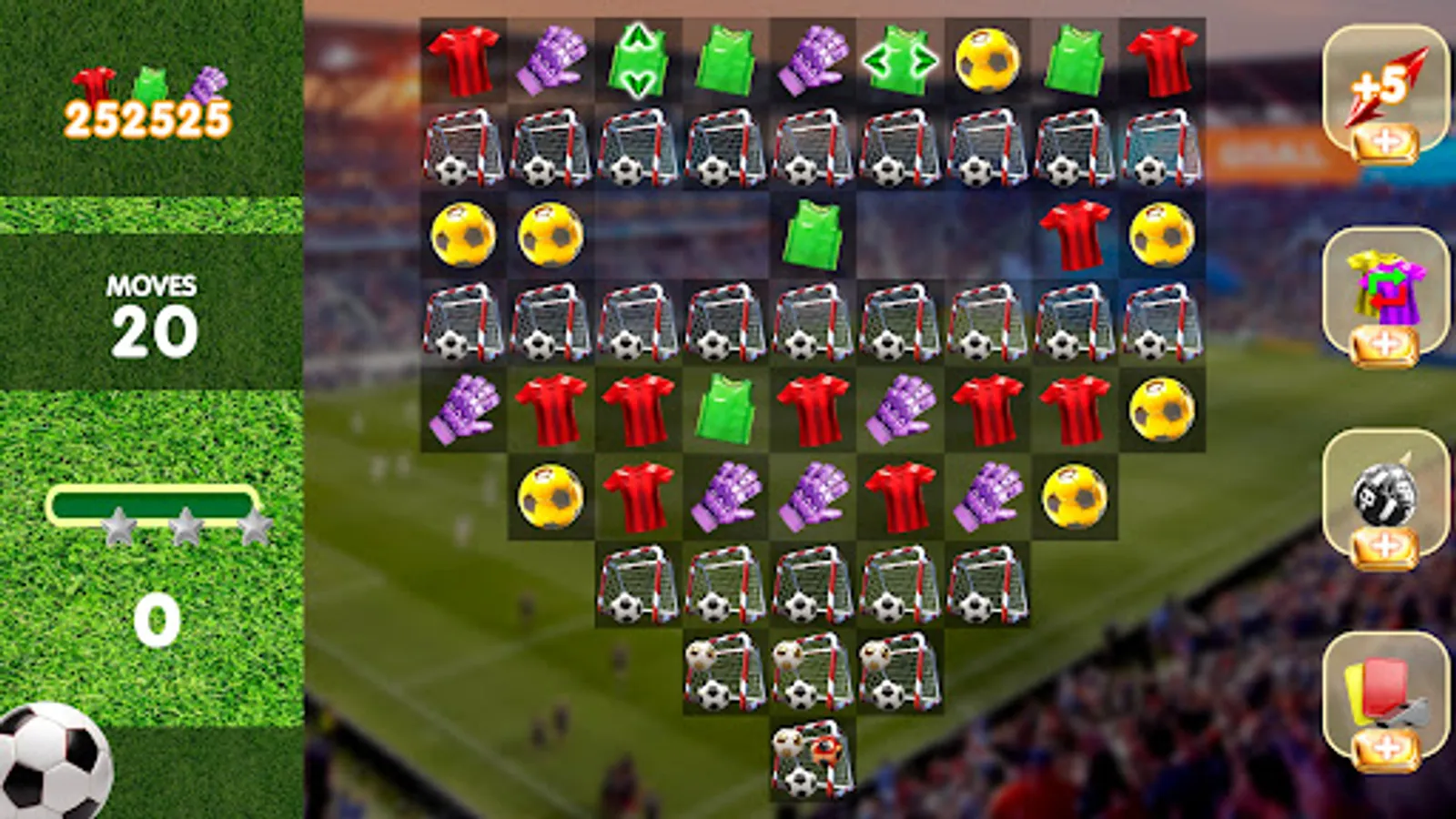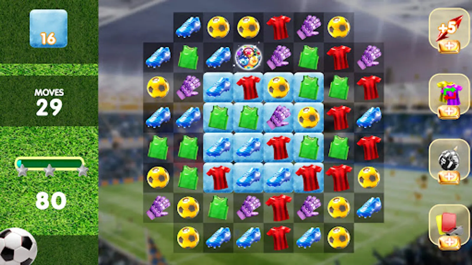 Show off your football spirit by collecting and upgrading a diverse range of football-themed items. Personalize your game with jerseys, cleats, and accessories inspired by your favorite teams and players. Showcase your unique style as you conquer the challenges of match 3 puzzles!