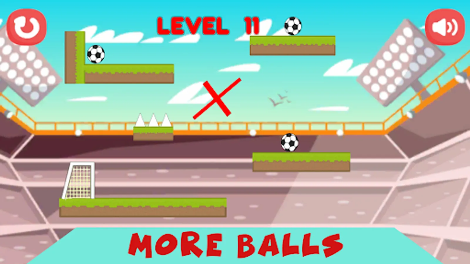 Football Rotate - It is a great football game where you can put a moving soccer field in the right position and just let the ball go into the goal. Big challenges are waiting for you to spend your free time in the best and most fun way. Your aim is to round the ball or balls correctly into the goal. There are different obstacles in the Football Rotate waiting to challenge you. Only the best football players can pass these obstacles! Are you one of them? So go according to plan and quickly change direction at the right moment to master the level and let the ball change from right to left just like a world famous football player. If you trust your football skills, this Football Rotate is for you. Come on, hurry up, challenges are waiting for you!