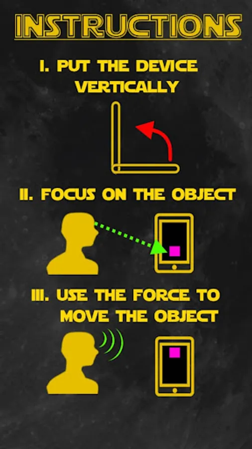 Just turn up the volumen, put the device in vertical position and use the force to move the objects.