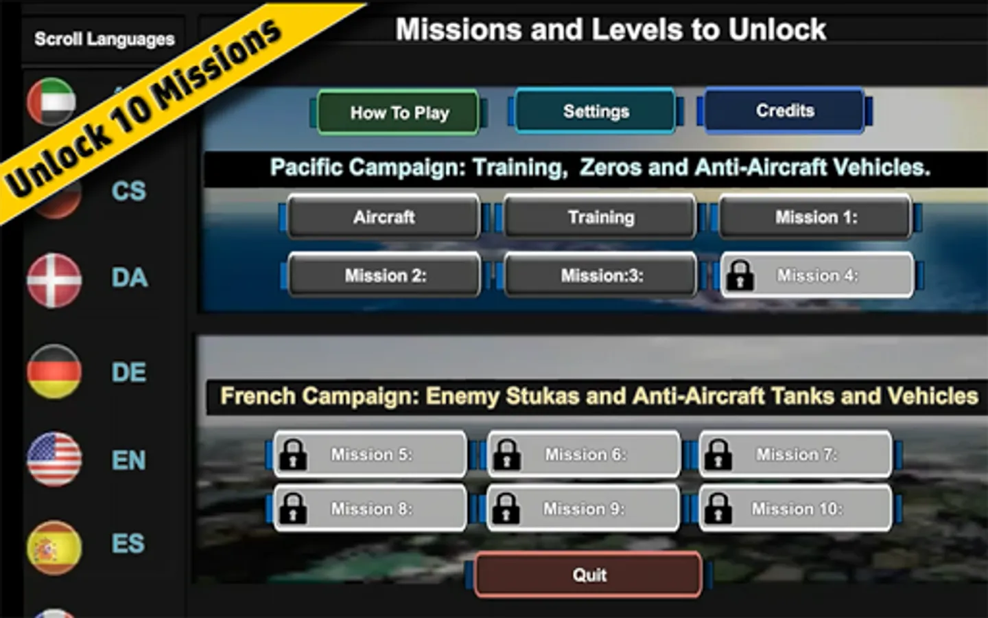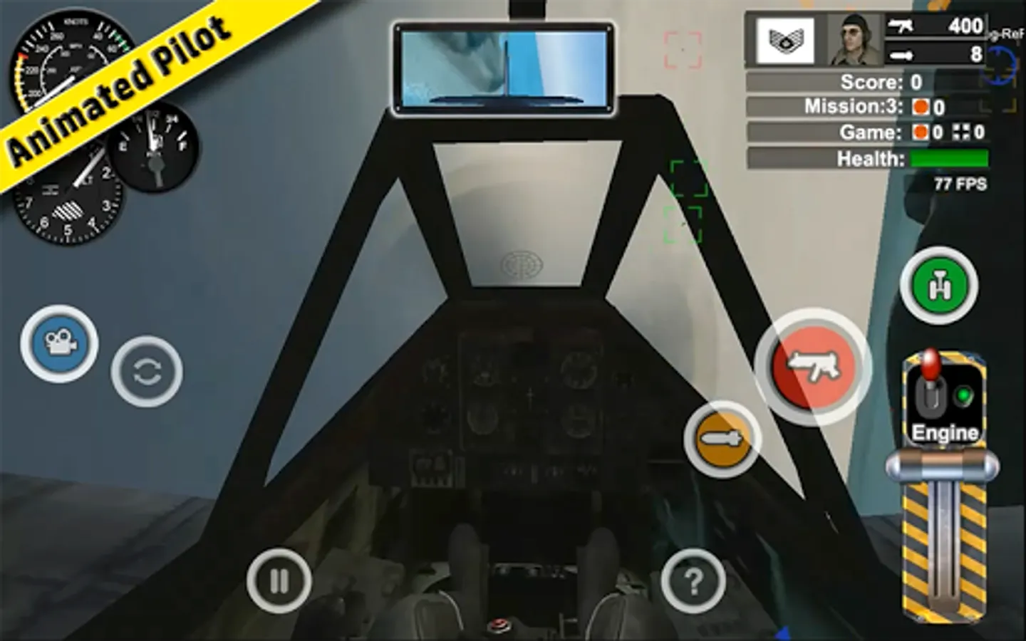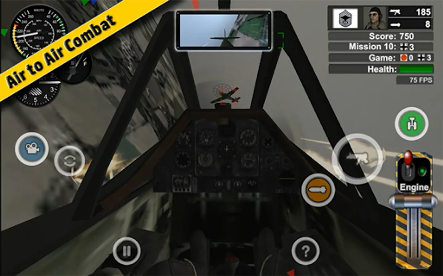 Strap in the cockpit. Power up the engines and take off for full blown action. Battle enemy aircraft and strafe anti-aircraft vehicles.