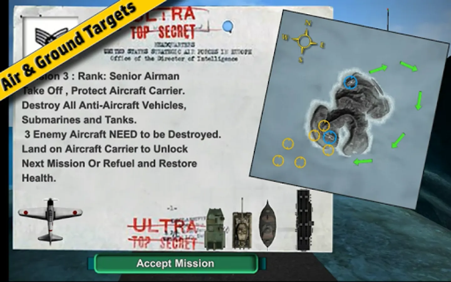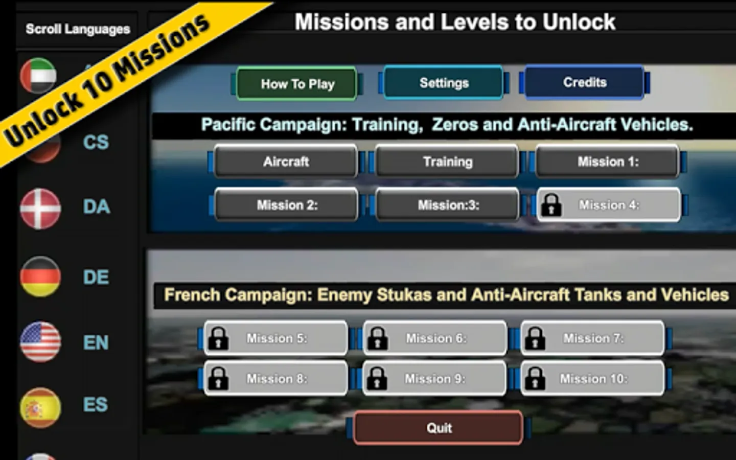 Use your device as the controller as you hunt and shoot down enemy aircraft in 11 Missions in three different locations.