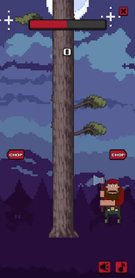 Lumberjack is an easy-to-play but challenging game where players progress by cutting randomly branched logs. As they advance, the number of logs and ratio of branched logs increases, and the game becomes more difficult by leveling up. Success in the game requires quick reflexes.