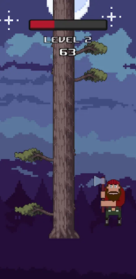 At each level, players need to improve their skills. To succeed, they need to cut logs at the right time and not miss branched logs. Additionally, there is a progress bar to track their progress, making the game even more exciting.