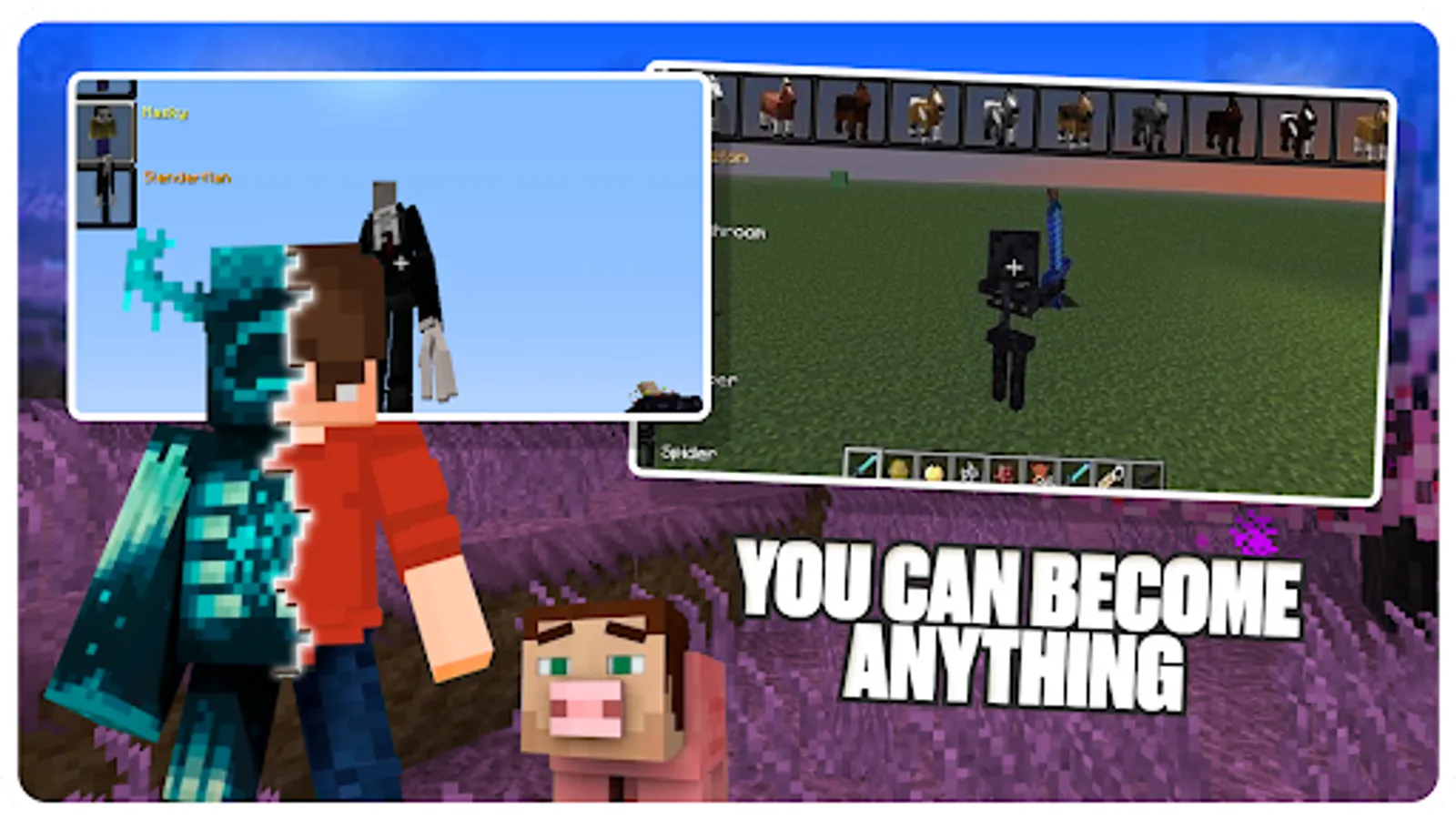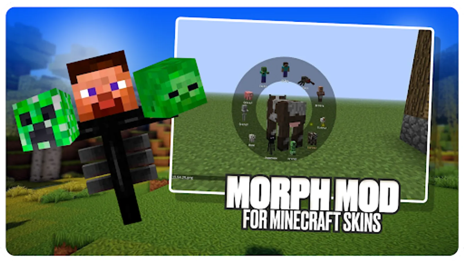 Minecraft Mods Morphs contain images of almost all characters. If you're looking for any particular addon mob, Morph Mod for Minecraft Skins is one hundred percent there! 🔥The Morphing mod for Minecraft PE works as easy as possible. But, just in case, we've added a few accessibly described instructions on how to use it. 🤗