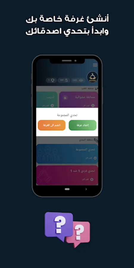 2- اسئلة دينيه ١ ضد ١ او : العب مع صديقك في تطبيق سؤال وجواب اسلامي عن طريق انشاء غرفة ودعوة صديقك واستمتع باللعب
