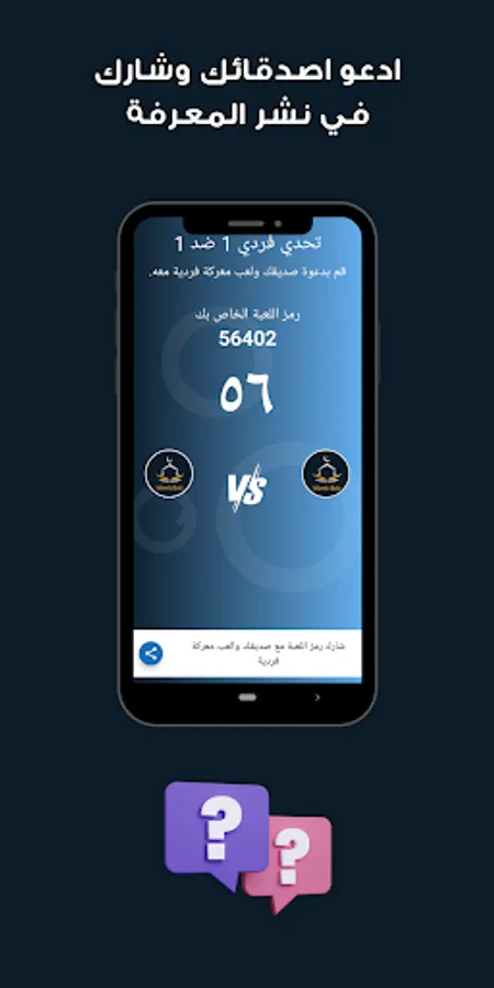 6- مشاركة وتحدي : يمكنك مشاركة أسئلة تحدي مع أصدقائك والتنافس في اسئلة دينية السلامية متنوعة ( Islamic quiz online )