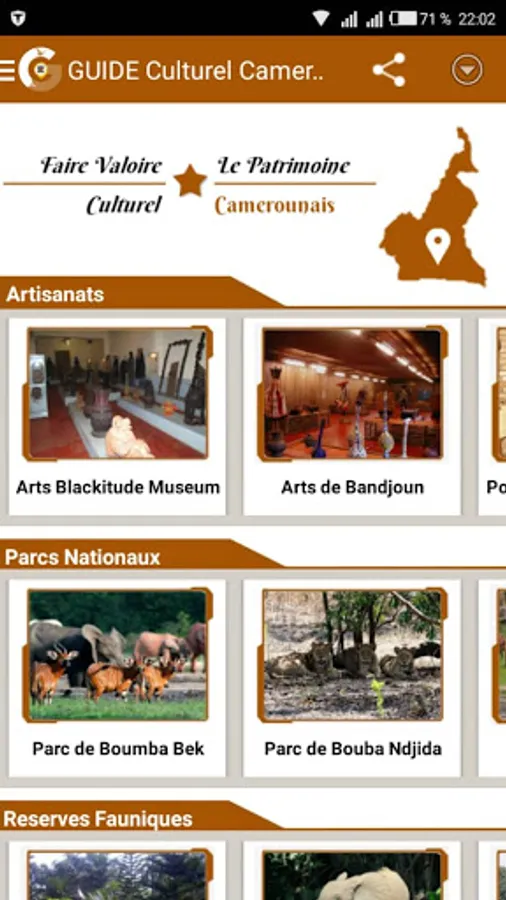 THE CAMEROON CULTURAL GUIDE is an entirely free application which can be browsed offline & online intended to promote our know-how while highlighting Cameroon's Cultural Heritage.
