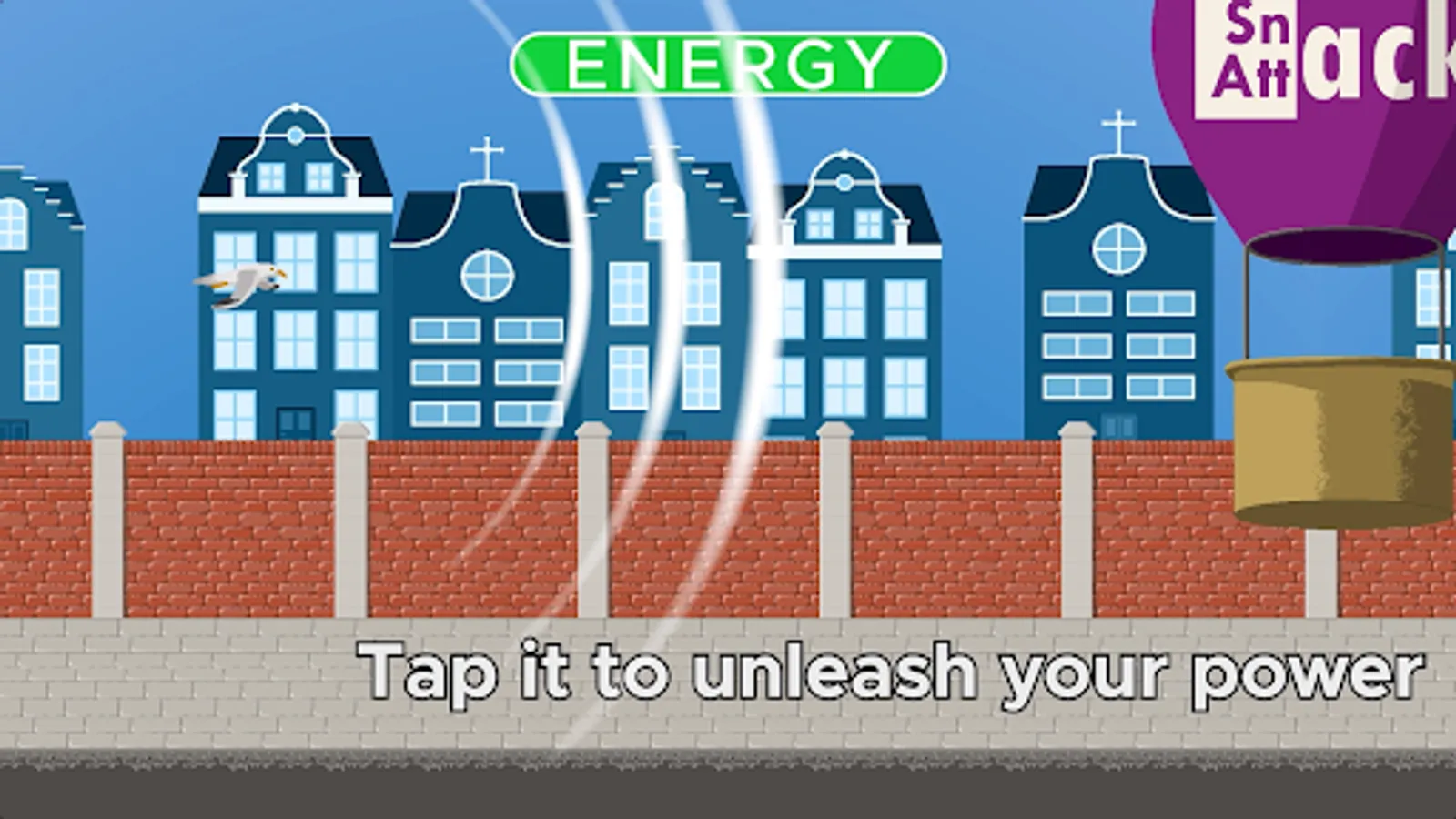Seagull Gullifar's favorite snackbar is being closed down and taken over by a new co-op called Snack Attack. They already have several locations all around the city and now they want this location as well. Gullifar decides to take revenge on everyone associated with Snack Attack now that he can't eat his favorite snacks. He poops and destroys as much as he can to try and make an end to Snack Attack and get back his favorite snackbar.