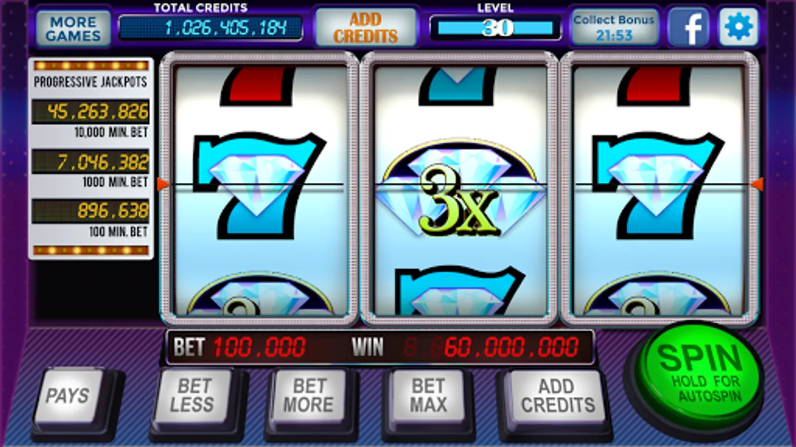 Vegas Diamond Slots is intended for an adult audience and does not offer real money gambling or an opportunity to win real money or prizes. Practice or success at social casino gaming does not imply future success at real money gambling.