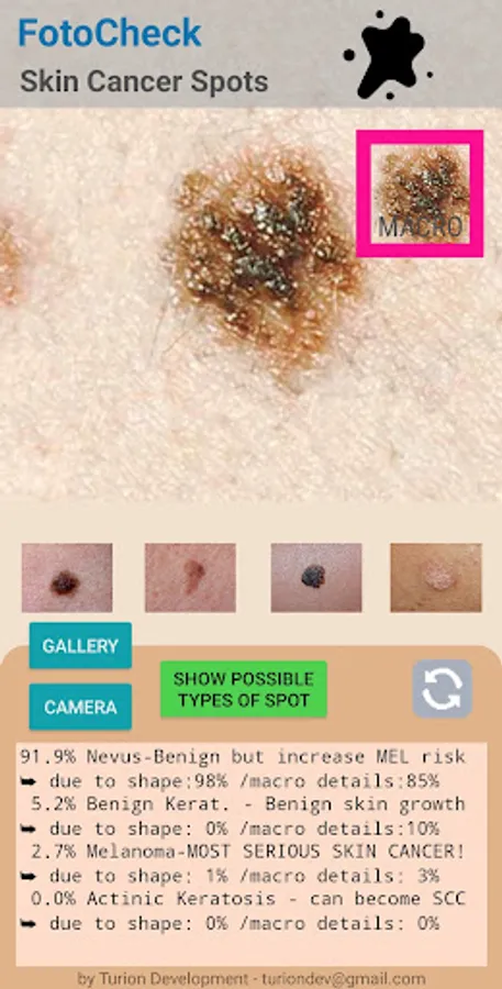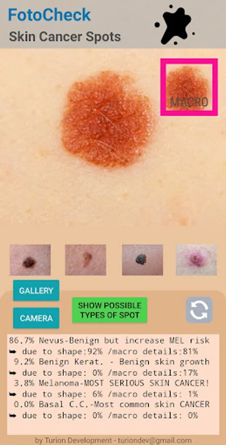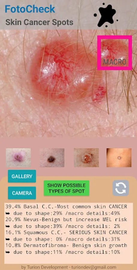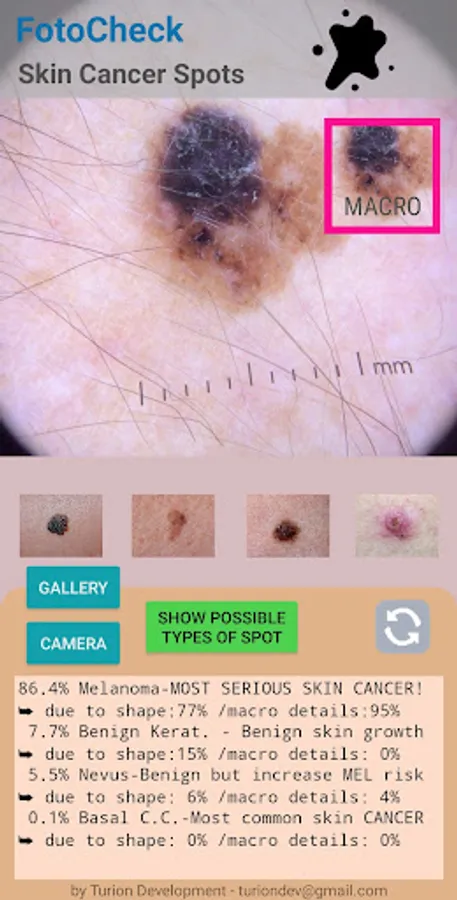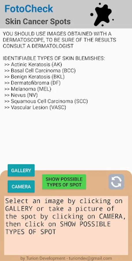 If you decide to use this app, it is highly recommended to load a photo made with a dermatoscope as regular pictures don't show small details (THIS APP IS NOT FOR USING "YOUR SMARTPHONE AS A DERMATOSCOPE", THE DERMATOSCOPE IS AN EXTERNAL PROFFESSIONAL TOOL YOU COULD USE TO OBTAIN HIGH QUALITY IMAGES).
