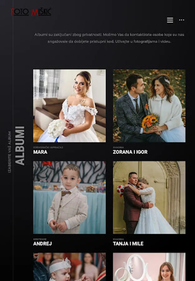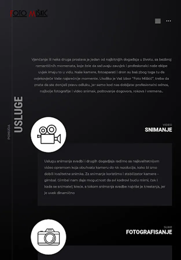Vjenčanje ili neka druga proslava je jedan od najbitnijih događaja u životu, sa bezbroj romantičnih momenata, koje žele da sačuvaju zauvjek i profesionalci naše ekipe uvjek imaju to u vidu. Naše kamere, fotoaparati i dron su baš zbog toga tu da ovjekovječe Vaše najsrećnije momente. Ukoliko je Vaš izbor “Foto Miškić”, treba da znate da ste donijeli pravu odluku, jer samo kod nas dobijate: profesionalni odnos, najbolje fotografije i video snimak, poštovanje dogovora, rokova i vremena..