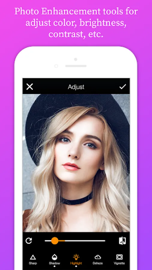 * Rich set of photo enhancement tools for adjust color, brightness, contrast, and blur.