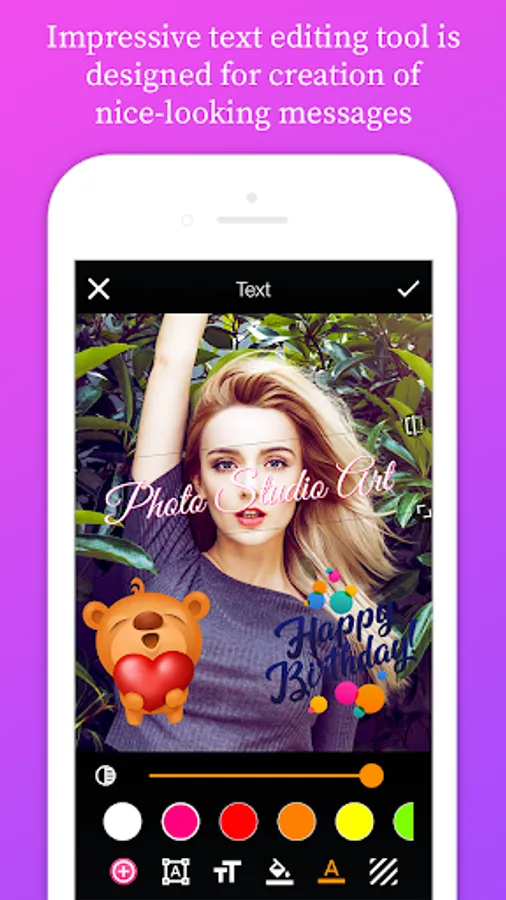 * Import photos easily from your photo gallery, camera or from Facebook into this picture editor.