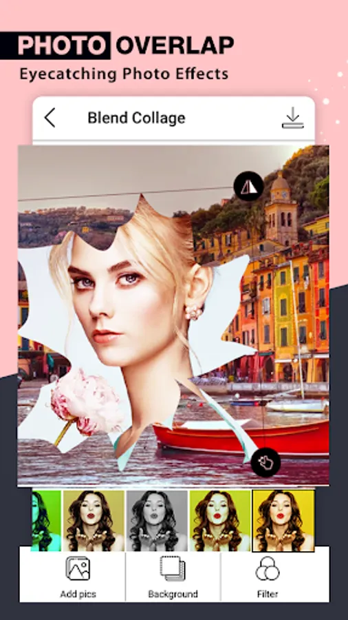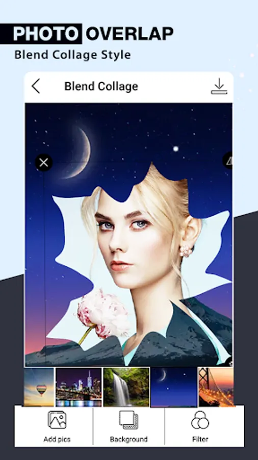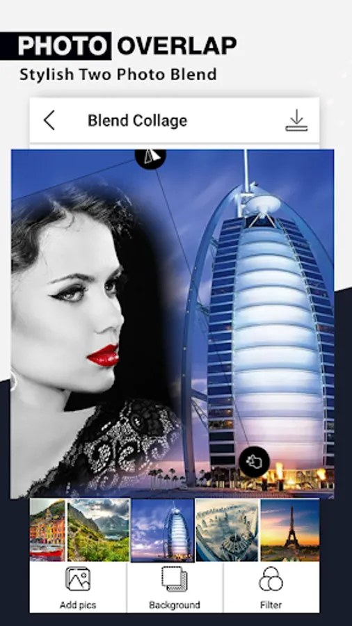 ☆ Multiple layouts for shapes, wallpapers, stickers and fotos overlapping. One touch finger gestures, zoom in and zoom out functions. Photo Overlapping is very much fun to use.