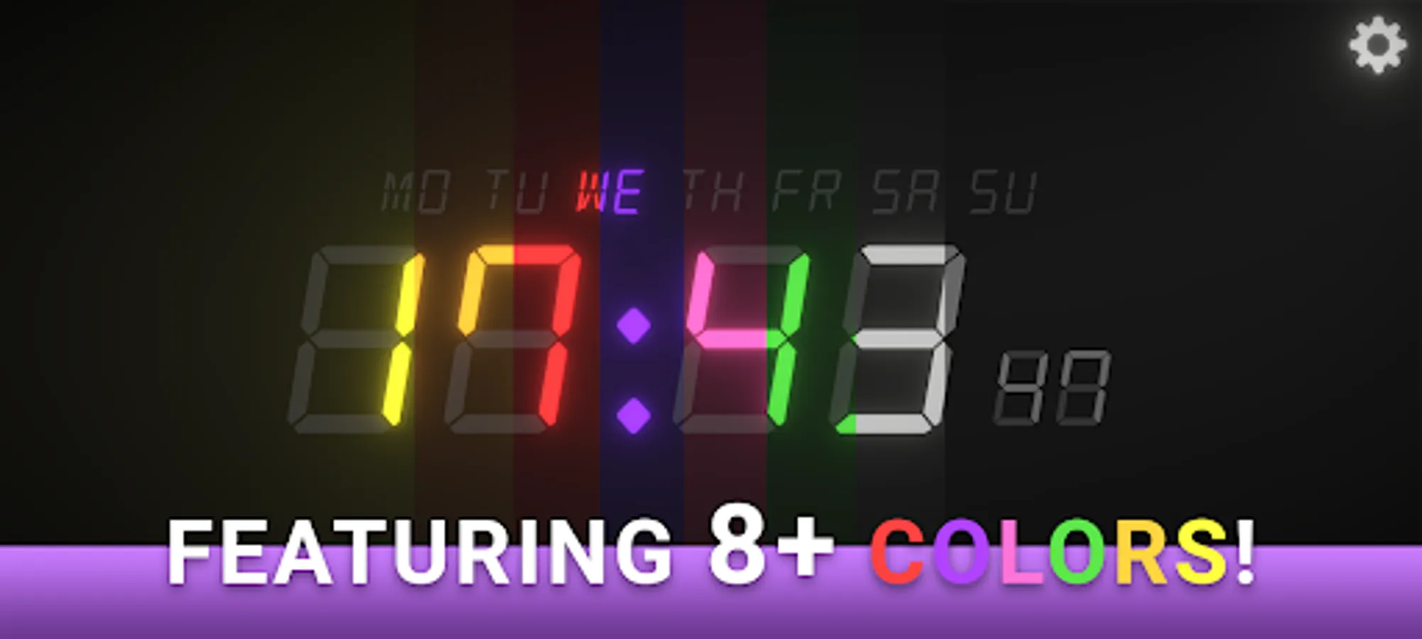 Using this flawless nightstand clock with weather app, you can check the time whenever you want, even in the dark! So, whether you are looking for night stand clock apps for android, trying this digital clock will be worth the effort. Our digital clock app features several options like 24 hour display mode, adjustable brightness, multiple colors and highlighted weekdays.