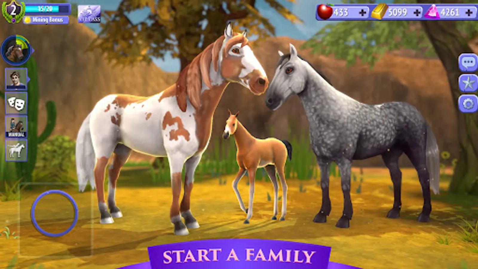 Catch the perfect horse! Create a magical bond with wild horse breeds such as the Mustang, Dapple Grey, Appaloosa and other paint horses as you tame and care for them, preparing your stallion to be ridden as you set out on your quest.