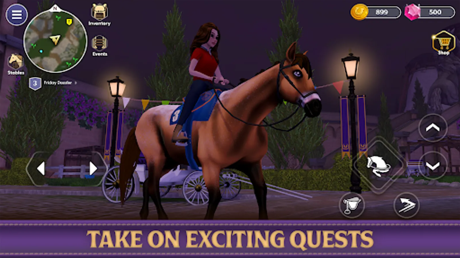 Race against the clock in show jumping and cross country competitions. Train your horse to improve stats such as speed, sprint energy, and acceleration as you earn your place among the top riders of Evervale.