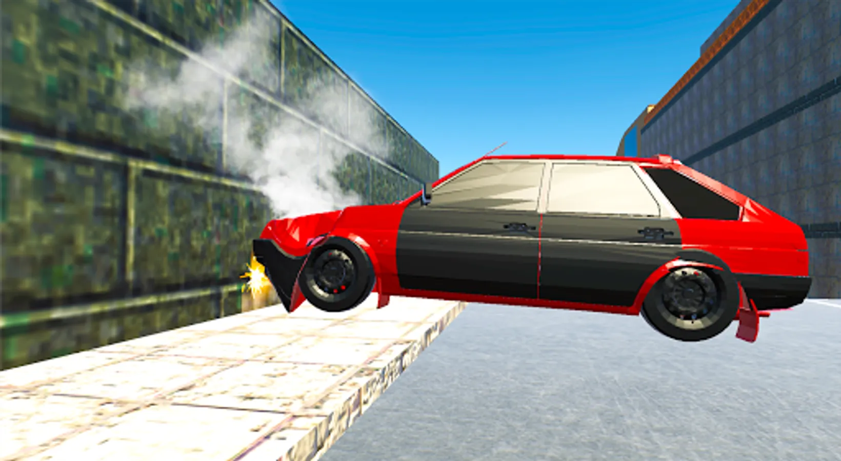 The VAZ 2109 car crash test simulator offers many driving modes and crash tests to choose from. You can choose a crash test mode and have real tests for your car, or you can choose a free crash test mode and drive your car across a large location with different obstacles and challenges, destroying the car in different ways.