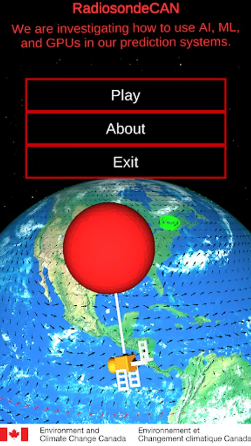 In RadiosondeCAN, the player launches simulated weather balloons on a 3D Earth, using real wind data from around the globe. This simple game was developed in a few days by the Meteorological Service of Canada (MSC) at Environment and Climate Change Canada (ECCC).