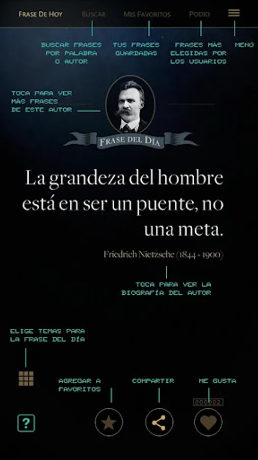 In addition, you can create your library of favorite phrases, access the biography of the person who wrote it or forward it to whoever you think will appreciate it.
