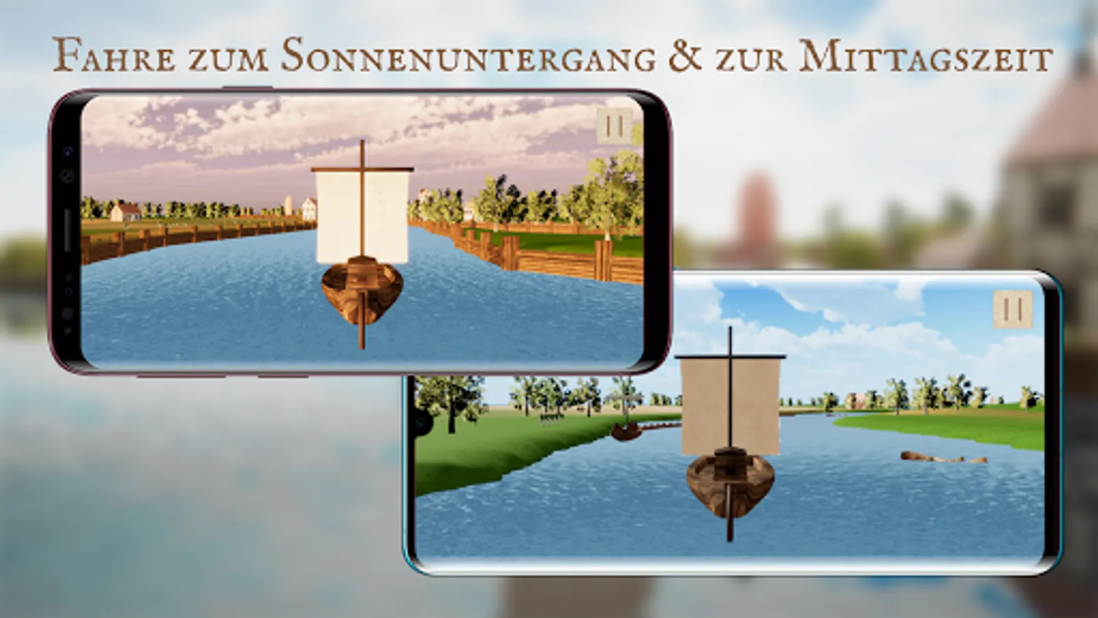 The drive from Lüneburg to Lauenburg used to take a few days. Therefore, it is only up to Bardowick, about 5 km from Lüneburg. The course of the river, landscape and buildings are modeled as they can be seen on the large Ilmenau map from 1714. The Ilmenau flows quite slowly with 1.5 m / s. Therefore, depending on the wind, a ride can take a half to an hour. If this is too slow, you can increase the speed - there are four levels of difficulty: Realism, Speed I, Speed II and Speed III.