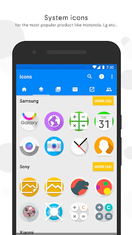 ・ Stock System icons for the most important producers like Samsung, HTC, LineageOS, Asus, Huawei, Leeco, LG, Meizu, Motorola, Oneplus, Sony, Xiaomi and many others