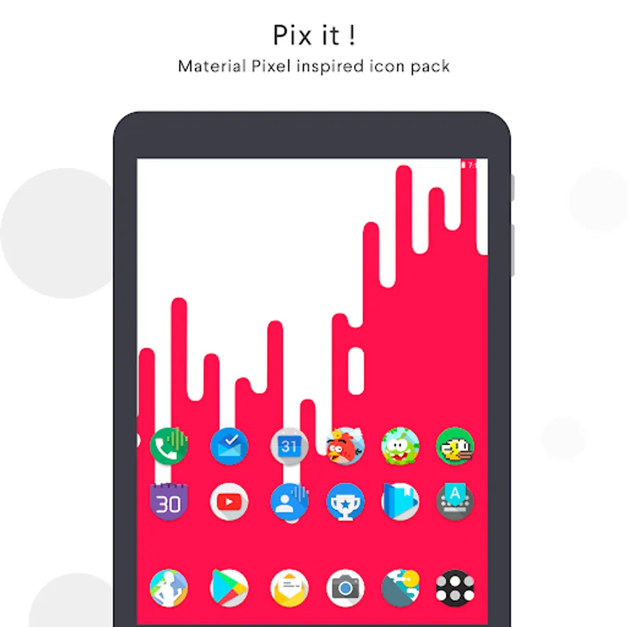 Pix it is a game of shapes and colors, a dynamic icon pack where the icon floating, fits, overlaps or even disappear!