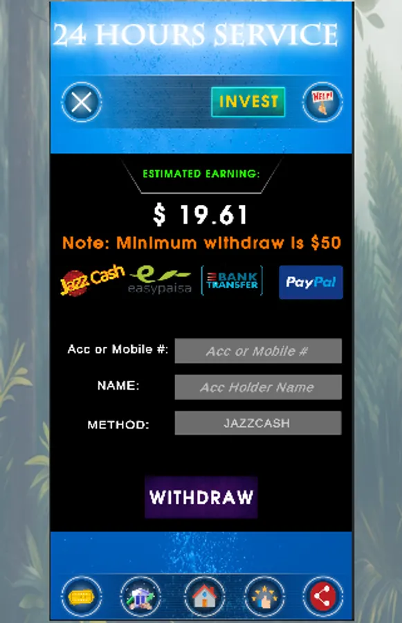 user can withdraw money by jazzcash, easy paisa or bank transfer easily.