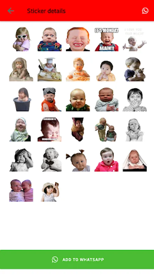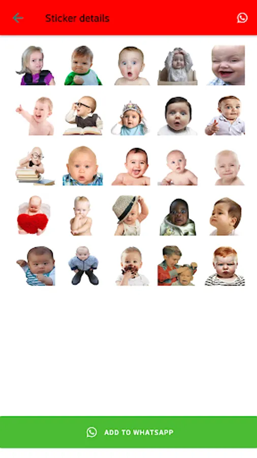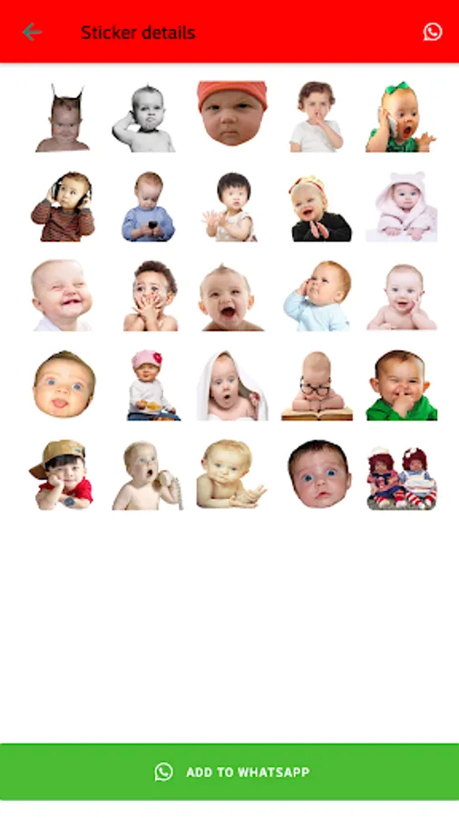 This app contains hundreds of funny and cute baby stickers. You can send these to your friends and families. These funny stickers are sure to bring a smile to your friends faces. Each and every sticker is unique in its own way. It has a all kind of emotions like laugh, anger, sad, cute Babies Stickers. It works only for normal WhatsApp. The best way to express your feelings with Babies Funny Stickers on WhatsApp.